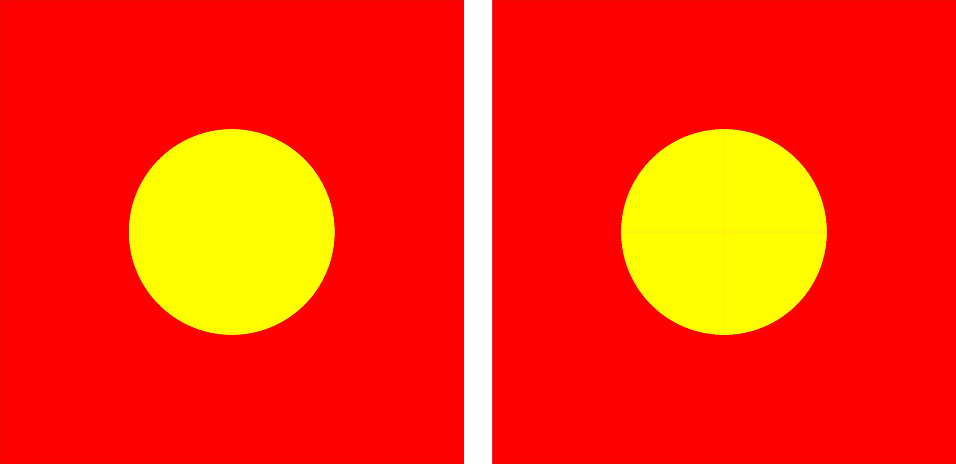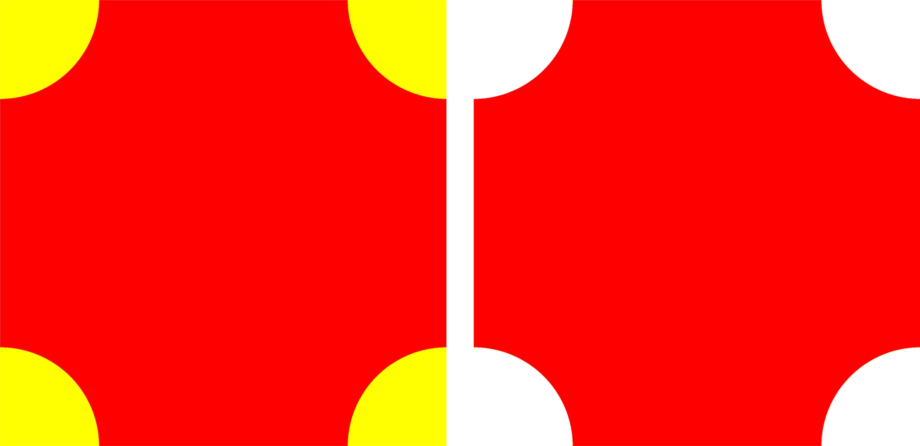 Move the yellow quarters to each corner of the square using the options under Align to get them just right. Select all five pieces and Flatten (Arrange tab) so they become one element.