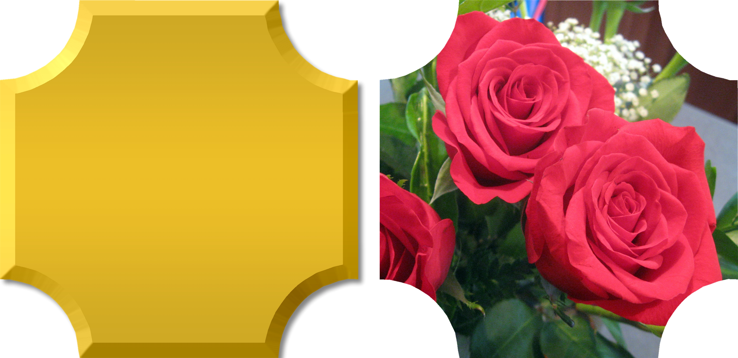 If you want to make a photograph this shape, select the photo, Format Photos, Select Mat, make the mat fill transparent and select this shape from the cutout option. The nice thing about shaping your photo this way is that it maintains the qualities of a photo and you can crop, zoom and move it around to get it just right. If you want to mat it, use a two or three-mat option but the largest mat always needs to be transparent. See my post regarding shapes and this post specifically about round photos for additional details.
